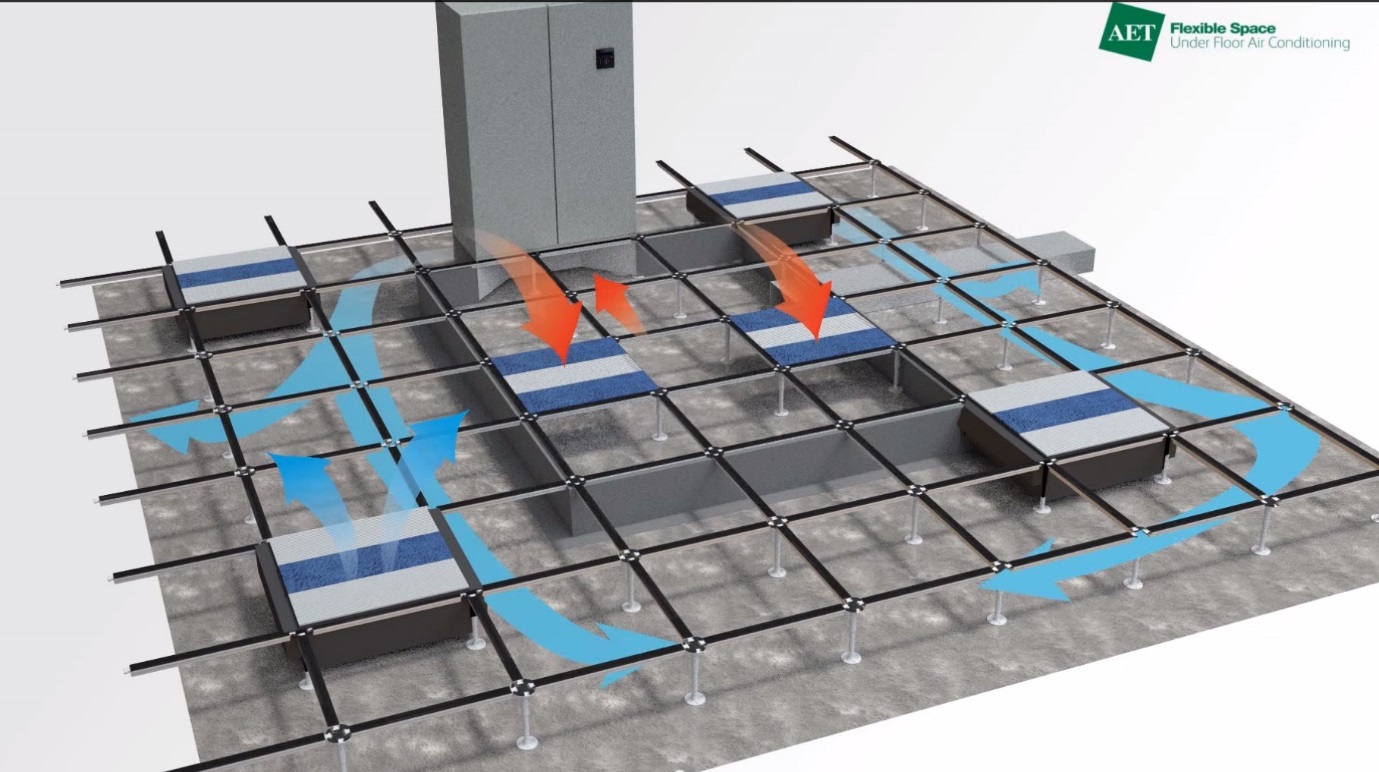 Facilities managers are frequently challenged by the pace of office churn, often restricted by fixed, stand-alone services with minimal or no control. Complaints of draughts and cold feet are common and so many times one sees ceiling diffusers switched off or covered with sticky tape and paper in an attempt to divert air when workers are based in a less than ideal position. AET Flexible Space systems are modular and adaptable. Plug and play fantiles easily interchange with 600mm raised access floor panels allow fast reconfiguration of office layout and easily accommodating minor changes and major churn. Equipment features simple yet sophisticated controls for individual users and facilities managers offering superior control of indoor environments compared with traditional ceiling based or wall mounted air conditioning units.