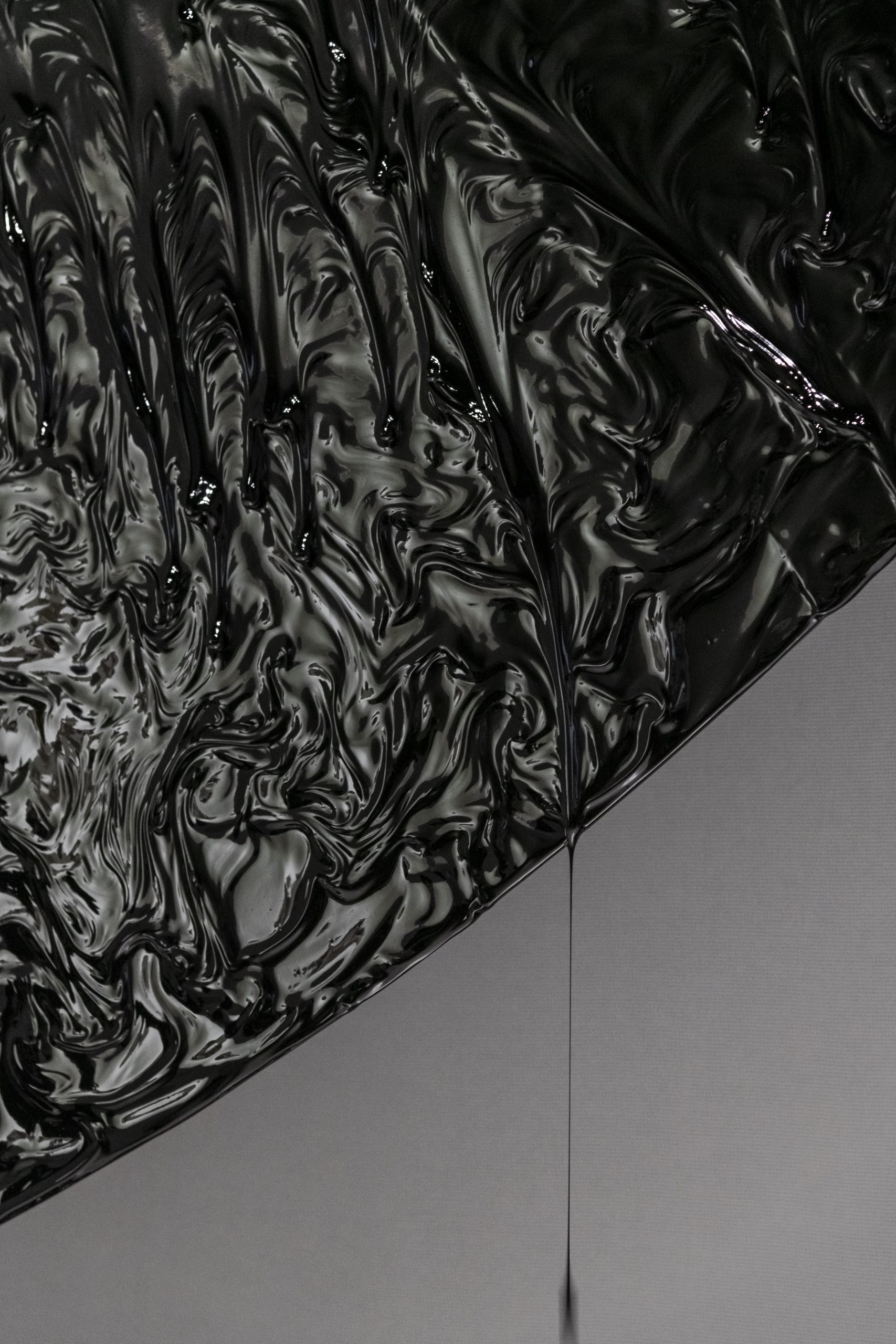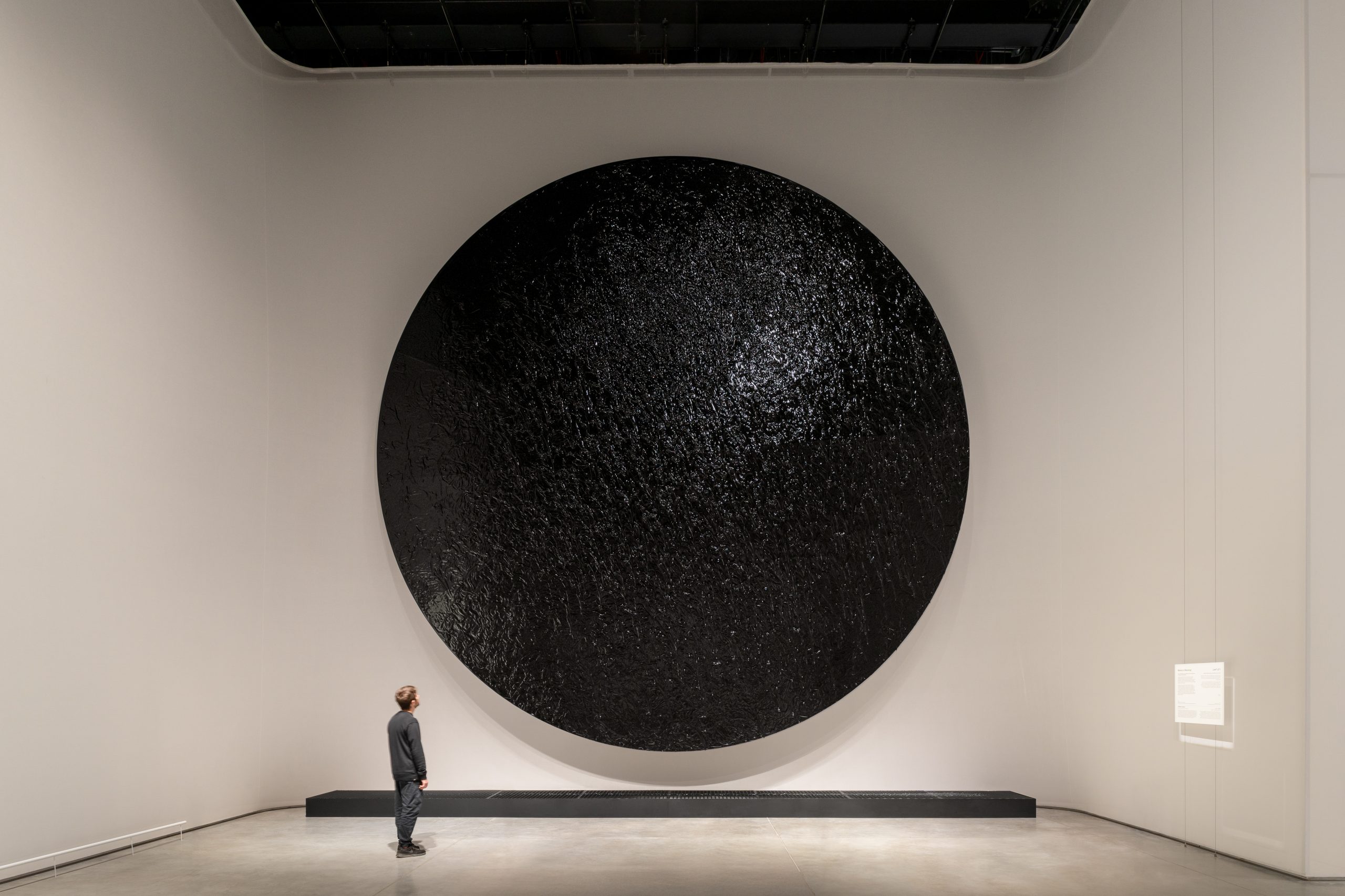 This disk, in constant motion, orchestrates a precarious dance between stability and collapse. The installation spans an impressive 8 meters in diameter, creating a profound and immersive experience. Time is an intrinsic element of this piece. The continuous rotation of the disk, maintaining the adherence of the oil, symbolizes the relentless passage of time and the persistent effort required to sustain existence.