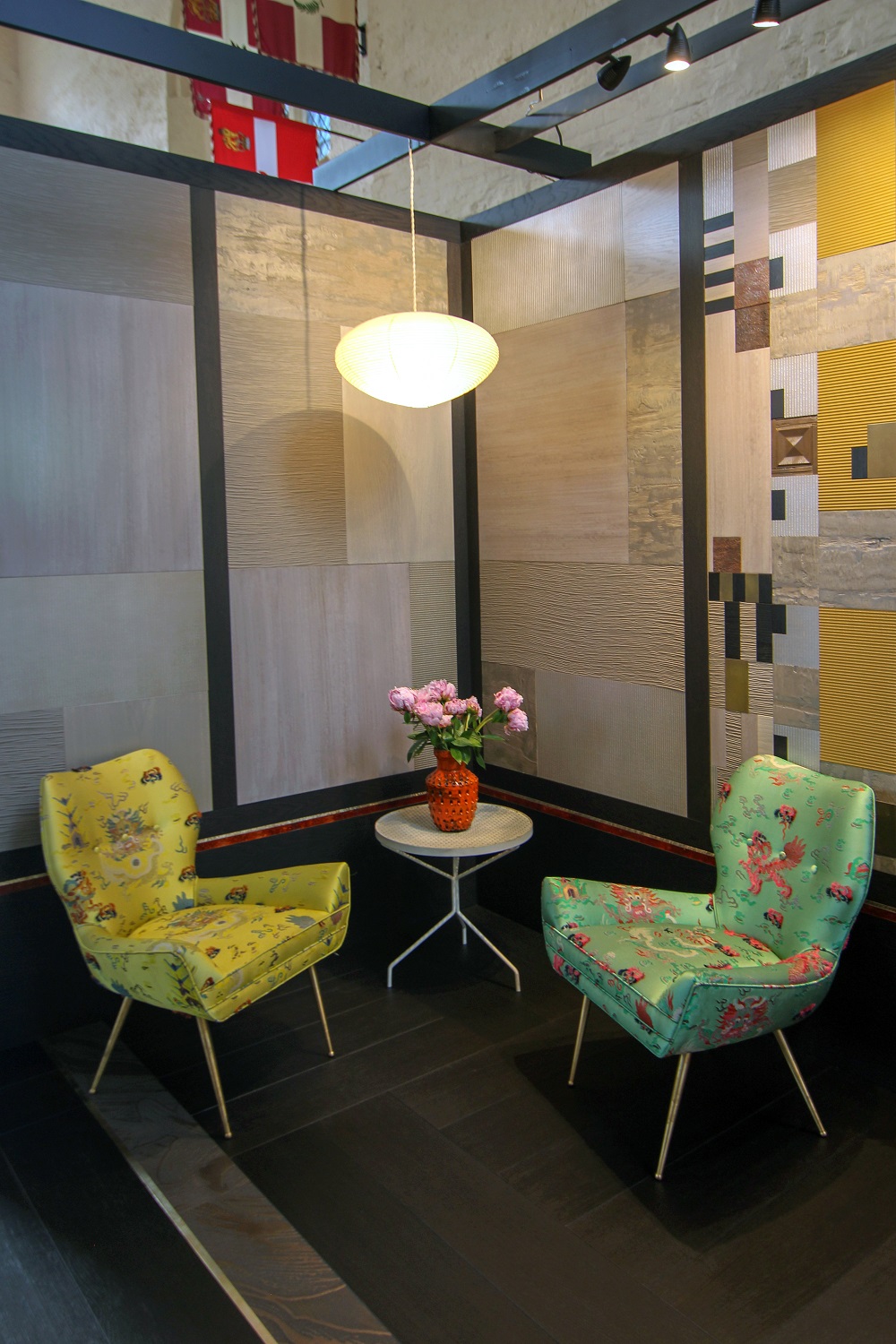 Our design for Artwood is a celebration of art and surface design. We have sought to combine Artwood’s exquisite textures in a series of tonal wall panels and flooring that celebrates our most cherished art and design icons, quite literally building ‘art’ into the fabric of a space. You’ll recognise shades of Carlo Scarpa, Anni Albers, Gustav Klimt, The Nabis, Jean Dunand…