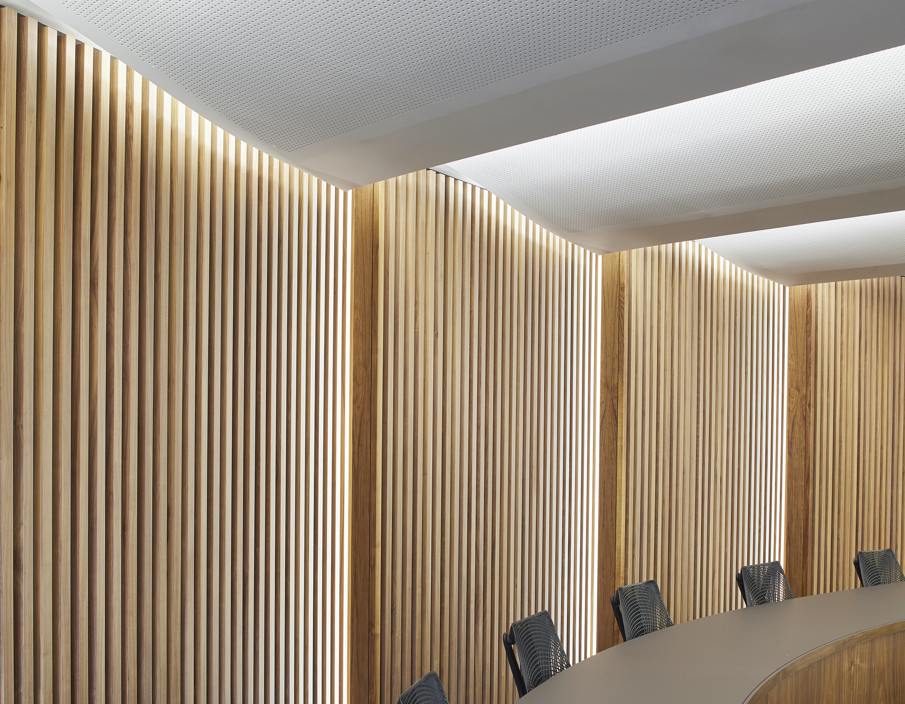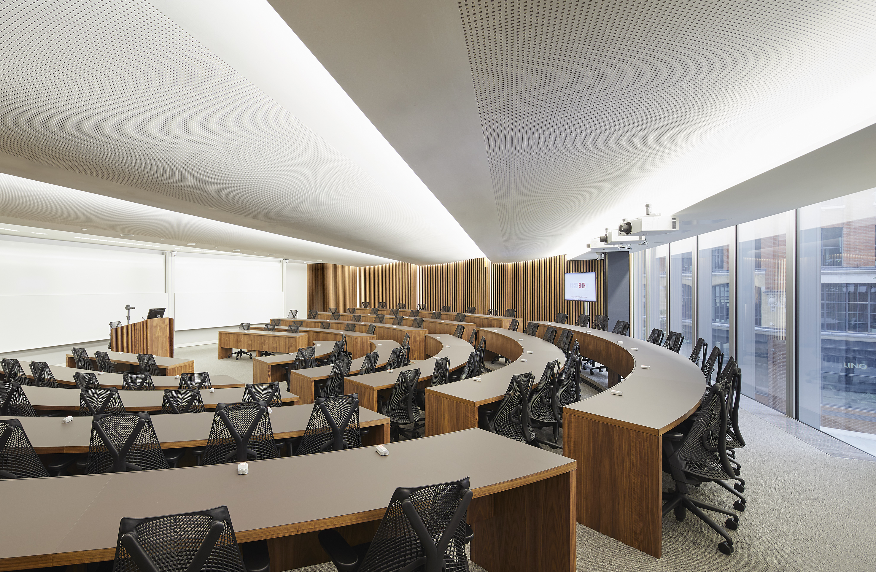 Throughout the project, astudio sought to reflect the prestigious history of Chicago Booth as one of the longest established business schools in the United States of America, while also drawing on modern design and architectural techniques to create an effective and empowering educational environment. Classrooms have been designed to cultivate learning and future leaders, with the ceiling geometry in the two classrooms inspired by the existing limited floor to ceiling heights as well as indirect light and acoustic requirements.