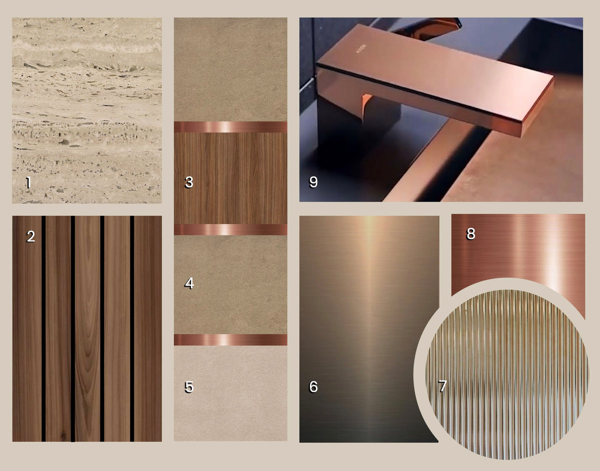 He continues: “My materials concept was built around the idea of using warm tones to create a relaxing atmosphere. The AXOR MyEdition polished red gold colourway added a warm metallic element together with combinations of taupe scuba textiles, bronze and IsoTeck inspired by the luxury marine sector. Together they create a harmonious palette of earth tones for the bathroom space.”