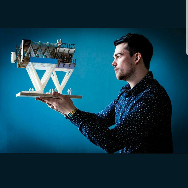 Thomas Cox is a ‘grey-sky’ thinker. He is concerned by levels of air pollution in dense urban centres. Smog, caused by the release of Nitrogen Oxides from internal combustion engines, is a major health issue in the world’s largest population centres such as Los Angeles, Beijing and Delhi, and is becoming increasingly prevalent in London. Thomas’ response is a building design that he calls the ‘Sky-Farm’.