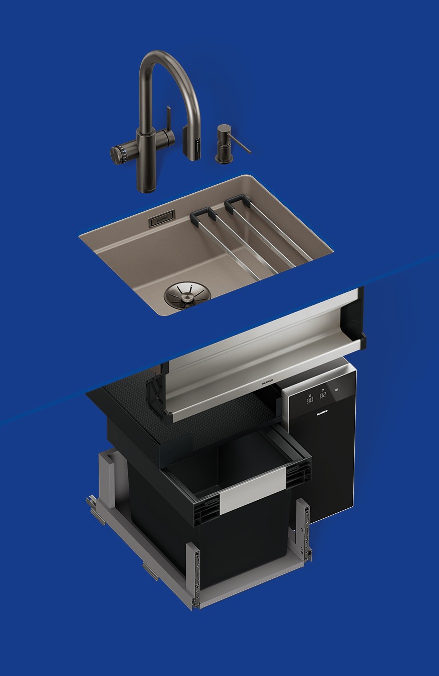 CHOICE forms part of the BLANCO UNIT — an integrated workstation that combines the sink, tap, waste management and under-sink organisation into one modular system. Together, these components create an ergonomic, efficient, and beautifully coordinated hub at the heart of the kitchen.