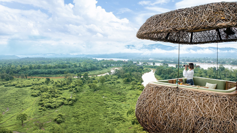 Located at Anantara Golden Triangle, this dining concept is perched 52 meters high, offering panoramic views of Thailand’s borders with Myanmar and Laos. Inspired by local beehives, its bamboo-clad capsule provides an immersive nature experience.