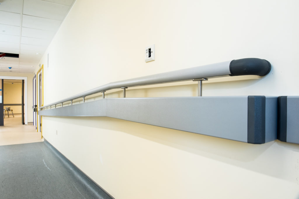To ensure that the investment of time and money made by County Hospital in the re decoration and layout of the new ward was preserved for many years to come, Yeoman Shield Guardian Twin Handrail was fitted to the walls along the bed bay corridor.