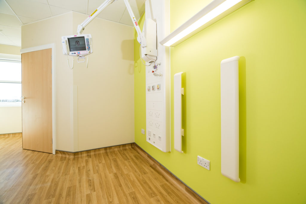 The 12, bright and airy, en-suite rooms, colourfully painted, have Yeoman Shield bed head protectors installed on the walls at the head end of the patients bed. This area can be extremely vulnerable to damage caused by beds, drip stands and other medical equipment being wheeled up, too close, to the wall.
