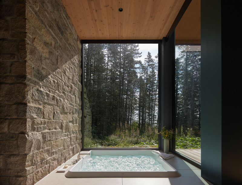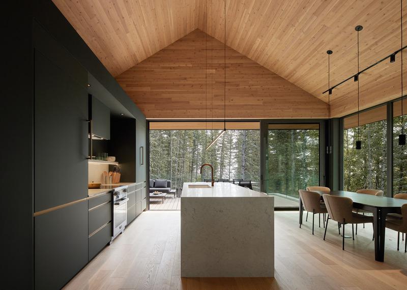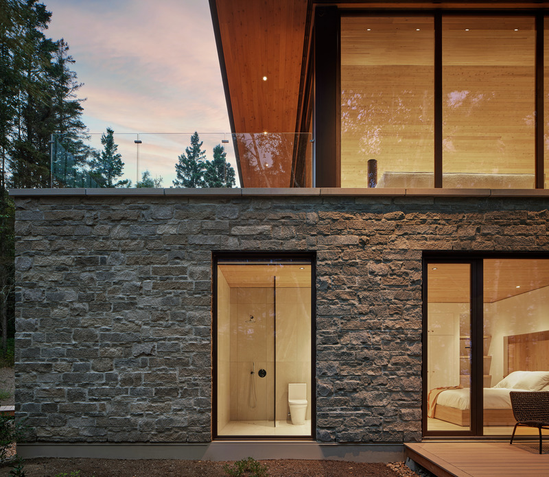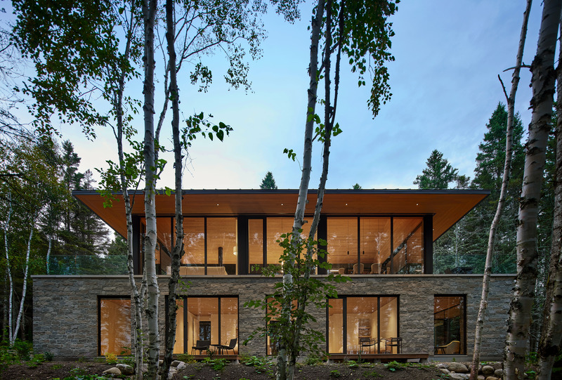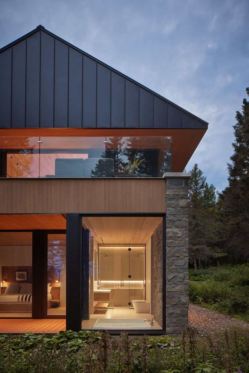 The use of sustainable materials also contributes to the house’s durability in the harsh Charlevoix mountain climate. Weather-resistant metal roofs, stone, and cedar exterior finishes were chosen to minimize operating and maintenance costs.