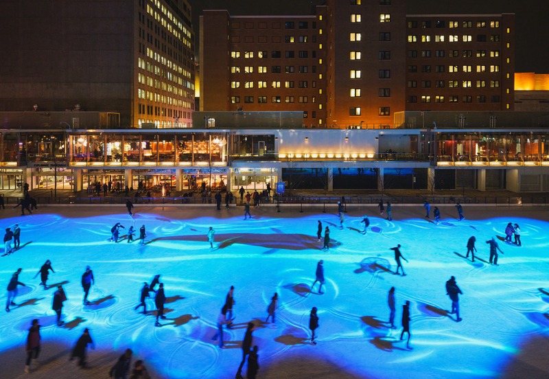 On the façade of the Grande Bibliothèque, Hyperobjects, by artist Aude Guivarc’h, invites viewers to ponder the ephemerality of seemingly permanent and unchanging things. Lastly, the Esplanade Tranquille skating rink once again presents the interactive video projection Au bord du lac Tranquille by Mirari and Normal studio, taking Montrealers and visitors on a dreamy journey through Quebec’s Far North.