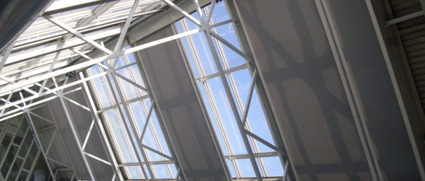 Newcastle College required replacement blinds for a large roofed area. The construction of metal and glass allied to the pitch of the pitch of the roof could have almost been designed as a sound reverberation chamber. The light needed controlling; the fabric had to be robust and durable with a very heavy bottom bar being specified on a blind of 6.0 m drop and the acoustics had to be addressed.