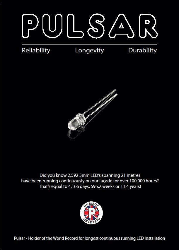 Yet again, another major milestone for Pulsar, having two installations surpassing 100,000 hours continuous use. As far as we’re aware there are no other similar examples, particularly when many installations would have been stripped out and re-fitted many times over the years. We pride ourselves on producing quality products, which we expect to be reliable and durable. We’re also proud to refer to an installation with over 100,000 hours when our customers ask about Pulsar’s product lifetime, this is very important when the customer asks for longevity for an installation on the front of a façade etc.