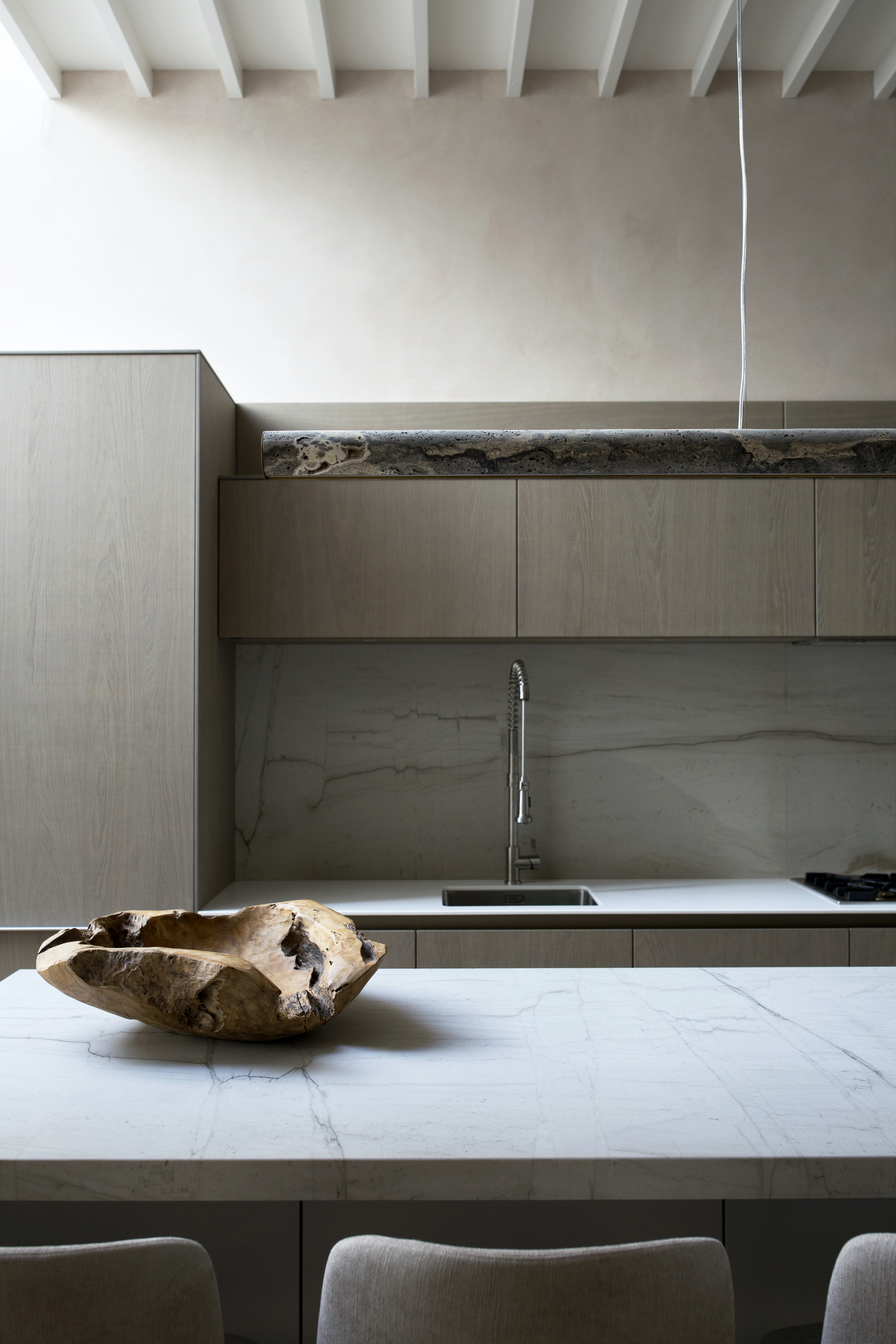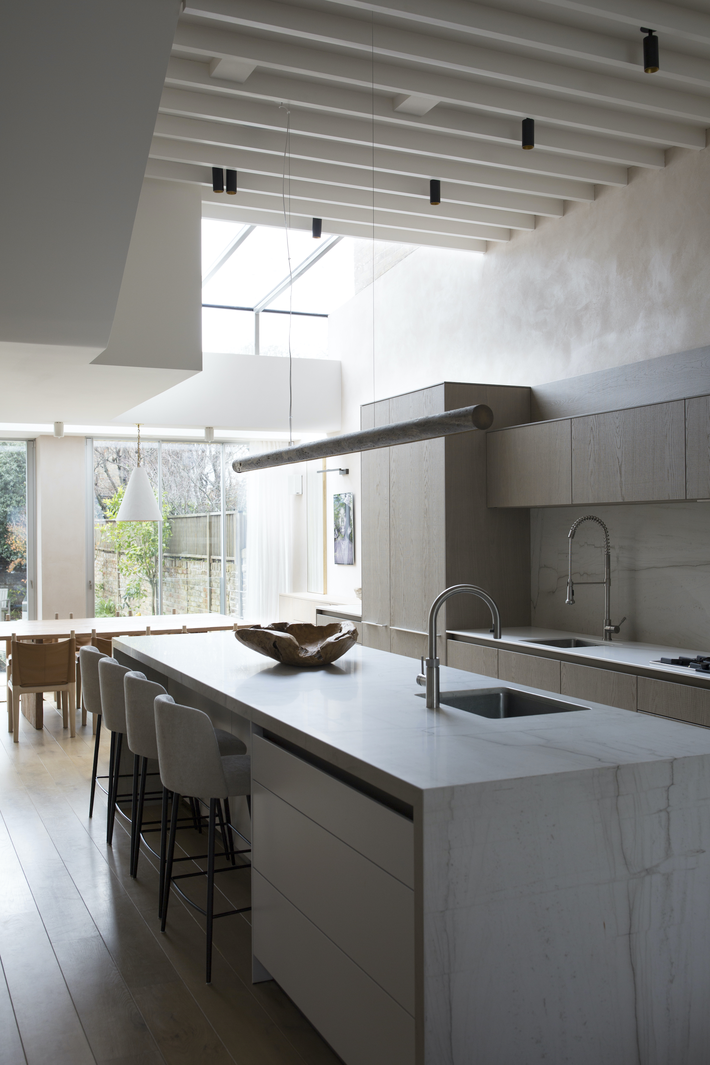“This house was really about creating a refuge – balancing being in an urban environment with the need for calm, connections to nature, and a softness that is often lacking in London interiors. The owners had returned from living in the US where they had balanced life in New York with a small lake house in the Hamptons. Here, in Chelsea this house had to provide both the urban hub and the retreat in one property. We used texture and some finely crafted details quite a lot in this house. Not in an old-fashioned stuffy Chelsea way, but in a very clean, modern way. There is stimulation, both visually and to the touch, but it is subtle. Ultimately it is a house that flows well now for a lively family with the kitchen as the absolute heart of the house – one of the requests from day one.”