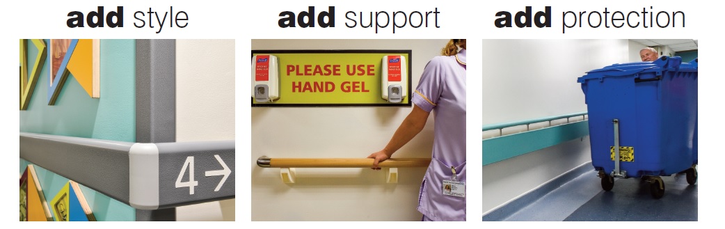 img-logoWe’ve extended our Yeoman Shield Guardian Handrail Range with an innovative new product. The 50mm Dia. PVCu Handrail comes in a range of 10 colours with either matching or contrasting accessories. We also offer a Timber and Stainless Steel Handrail on Cream PVCu underslung brackets with Stainless Steel accessories. The Twin Handrail offers support whilst protecting both the rail and wall surfaces against impact damage.