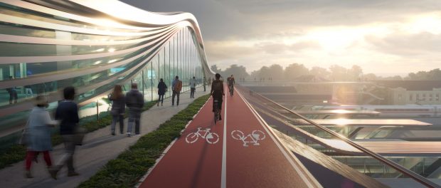 Integral to the city’s ongoing sustainability agenda that prioritizes pedestrians and cyclists, Zaha Hadid Architects’ proposal to upgrade Vilnius railway station incorporates a new public bridge over the railway tracks that connects the Naujininkai district to the south with the city centre and Vilnius old town; transforming the existing rail infrastructure from being a barrier that divides the city into a connector that unites Vilnius and serves as a transport hub for national and local rail services in addition to the new Rail Baltic line that links with Europe’s high-speed network.